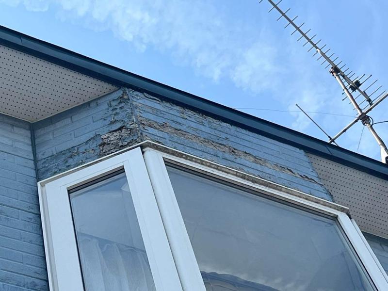 こちらは、外壁の一部が大きく剥がれ、下地まで見えてしまっている状態です。