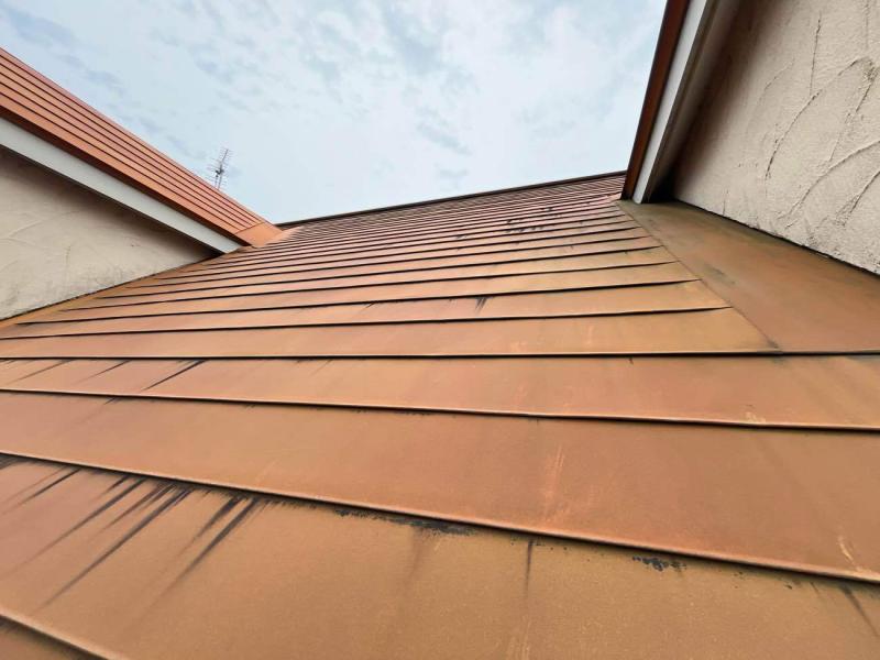 屋根も、雨、雪、結露などの「水分」と酸素に長期間触れることによる酸化反応で発生するサビが見られました。