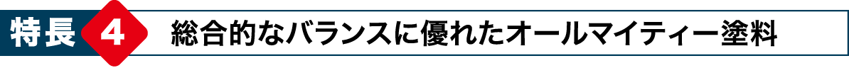 マイティシリコンは1液水性タイプなので、現場での作業性が良く、悪臭・引火性・毒性の危険もなく、総合的なコストパフォーマンスを含めてトータルバランスに優れたオールマイティーな塗料です。